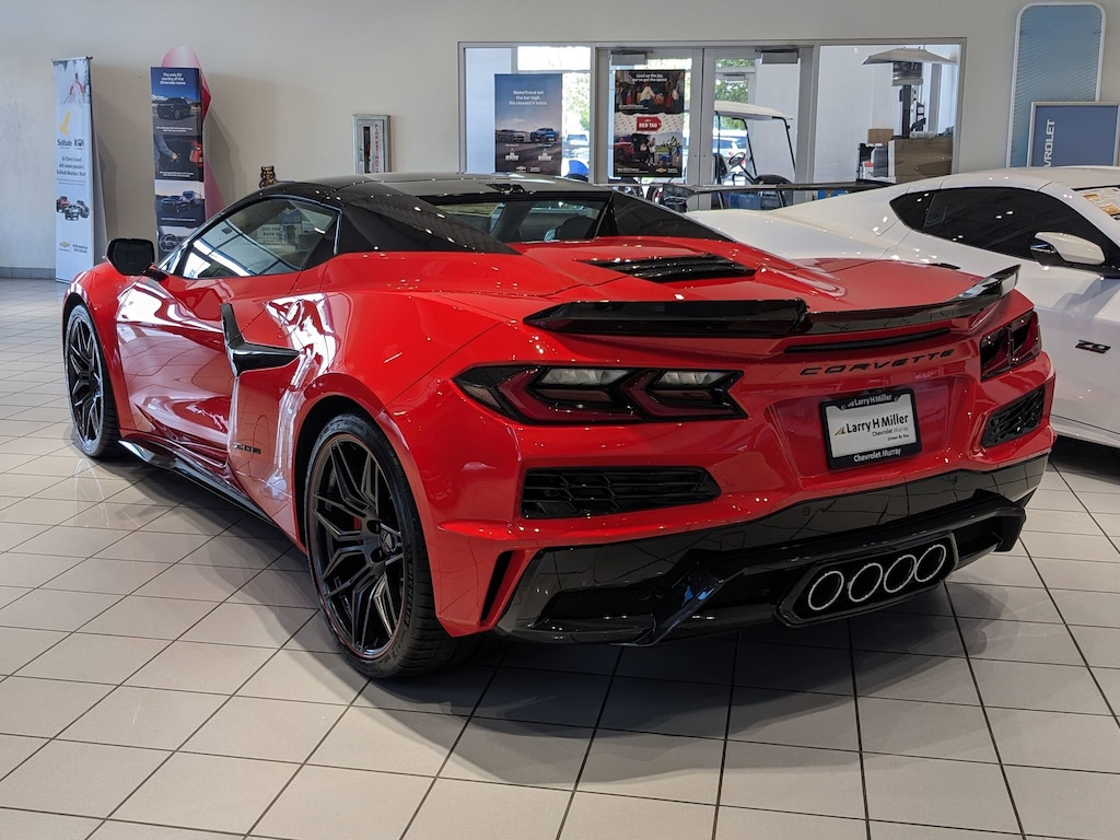 TIRES, 275/30ZR20 FRONT AND 345/25ZR21 REAR, BLACKWALL, HIGH PERFORMANCE (STD), SEATS, GT1 BUCKET (STD), SEAT BELT COLOR, TORCH RED, MIRRORS, OUTSIDE, CARBON FLASH METALLIC-PAINTED, LPO, SPOILER EXTENSION, CLEAR SMOKED CENTER BRIDGE WITH JAKE LOGO Genuine Corvette Accessory, LPO, ENGINE SPECIFICATION PLAQUE Genuine Corvette Accessory, LPO, 20" X 10" (50.8 CM X 25.4 CM) FRONT AND 21" X 13" (53.3 CM X 33 CM) REAR SPIDER DESIGN, SATIN GRAPHITE FORGED ALUMINUM WITH RED STRIPE WHEELS. Includes Black lug nuts and Black wheel locks. Accessory LPO wheels are a second set of wheels. Please ensure customer desires 2 sets of wheels before ordering. Accessory wheels do not include additional wheels caps, factory wheels caps may be reused, or additional wheel caps may be purchased. Genuine Corvette Accessory, JET BLACK, MULAN LEATHER SEATING SURFACES WITH PERFORATED INSERTS, ENGINE, 5.5L V8 DI, HIGH-OUTPUT Variable Valve Timing (VVT), (670 hp [499.6 kW] @ 8400 rpm, 460 lb-ft of torque [623.8 N-m] @ 6300 rpm) (STD), ENGINE INTAKE, RED.