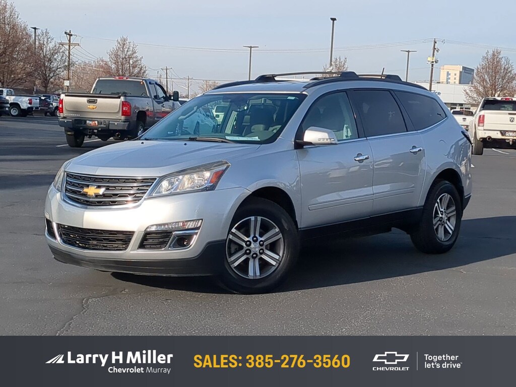 Only 104,095 Miles! Scores 22 Highway MPG and 15 City MPG! This Chevrolet Traverse delivers a Gas V6 3.6L/217 engine powering this Automatic transmission. WHEELS, 4 - 18" X 7.5" (45.7 CM X 19.1 CM) MACHINED ALUMINUM (STD), TRANSMISSION, 6-SPEED AUTOMATIC (STD), TIRES, P255/65R18 ALL-SEASON, BLACKWALL (STD).*This Chevrolet Traverse Comes Equipped with These Options *LICENSE PLATE BRACKET, FRONT MOUNTING PACKAGE , SILVER ICE METALLIC, SEATING, 8-PASSENGER (2-3-3 SEATING CONFIGURATION) with 2nd and 3rd row 60/40 split flat-folding bench seat (STD), RECLINING FRONT BUCKETS (STD), ENGINE, 3.6L SIDI V6 (281 hp [210 kW] @ 6300 rpm, 266 lb-ft of torque @ 3400 rpm [359.1 N-m]) (STD), DARK TITANIUM/LIGHT TITANIUM, SEAT TRIM, PREMIUM CLOTH, AUDIO SYSTEM, COLOR TOUCH AM/FM/SIRIUSXM RADIO WITH CD PLAYER 6.5" diagonal touch-screen display (STD), 1LT PREFERRED EQUIPMENT GROUP Includes Standard Equipment, Wipers, front intermittent with washers, Wiper, rear intermittent with washer.* Stop By Today *You've earned this- stop by Larry H Miller Chevrolet Murray located at 5500 South State St, Murray, UT 84107 to make this car yours today!