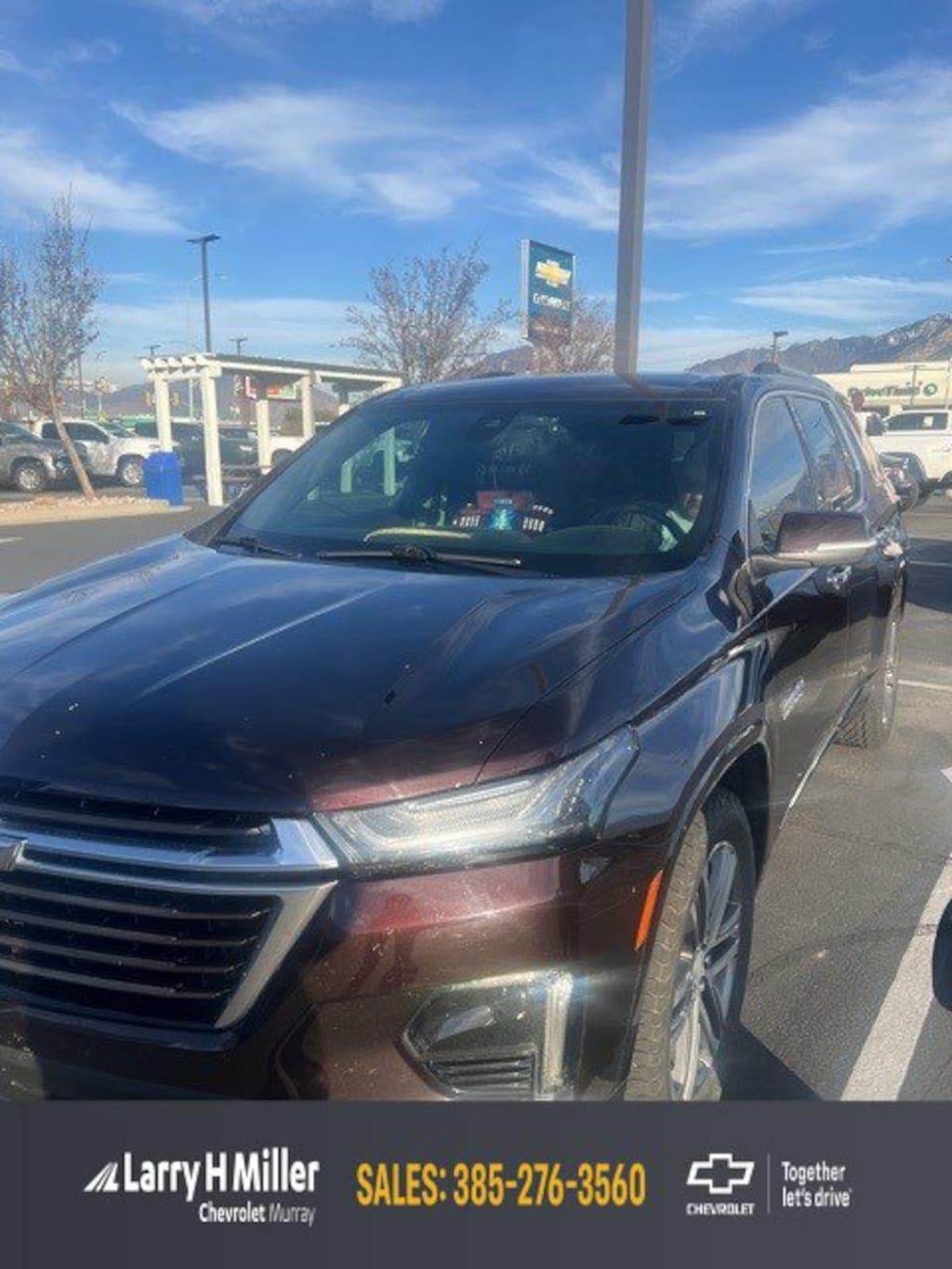 Delivers 25 Highway MPG and 17 City MPG! This Chevrolet Traverse boasts a Gas V6 3.6L/217 engine powering this Automatic transmission. WHEELS, 20" (50.8 CM) POLISHED ALUMINUM (STD), TRANSMISSION, 9-SPEED AUTOMATIC (STD), SEATS, FRONT BUCKET (STD).*This Chevrolet Traverse Comes Equipped with These Options *LPO, FLOOR LINER PACKAGE includes (RIA) front and second row all-weather floor liner, LPO, (RIB) third row all-weather floor liner, LPO and (CAV) integrated cargo liner, LPO, LICENSE PLATE FRONT MOUNTING PACKAGE (will be forced on orders with ship-to states that require a front license plate) , LPO, INTEGRATED CARGO LINER, LPO, ALL-WEATHER FLOOR LINER, FIRST AND SECOND ROW, LPO, ALL-WEATHER FLOOR LINER, 3RD ROW, JET BLACK/CLOVE, PERFORATED LEATHER-APPOINTED SEAT TRIM, HIGH COUNTRY PREFERRED EQUIPMENT GROUP Includes Standard Equipment, ENGINE, 3.6L V6, SIDI, VVT (310 hp [232.0 kW] @ 6800 rpm, 266 lb-ft of torque [361 N-m] @ 2800 rpm) (STD), BLACK CHERRY METALLIC, AUDIO SYSTEM, CHEVROLET INFOTAINMENT 3 PLUS SYSTEM with connected Navigation, 8" diagonal HD color touchscreen, AM/FM stereo, Bluetooth audio streaming for 2 active devices, Apple CarPlay and Android Auto capable, enhanced voice recognition, in-vehicle apps, cloud connected personalization for select infotainment and vehicle settings. Subscription required for enhanced and connected services after trial period (STD).* Visit Us Today *A short visit to Larry H Miller Chevrolet Murray located at 5500 South State St, Murray, UT 84107 can get you a trustworthy Traverse today!