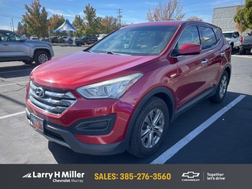 Only 122,888 Miles! Delivers 25 Highway MPG and 19 City MPG! This Hyundai Santa Fe Sport delivers a Regular Unleaded I-4 2.4 L/144 engine powering this Automatic transmission. SERRANO RED, OPTION GROUP 01 -inc: standard equipment, BEIGE, STAIN-RESISTANT CLOTH SEATING SURFACES -inc: Yes Essentials fabric.*This Hyundai Santa Fe Sport Comes Equipped with These Options *BEIGE, LEATHER SEATING SURFACES, Wheels: 17" x 7" Aluminum Alloy, Variable Intermittent Wipers, Urethane Gear Shifter Material, Turn-By-Turn Navigation Directions, Trip Computer, Transmission: 6-Speed Automatic w/SHIFTRONIC & OD -inc: lock-up torque converter and manual shift mode, Transmission w/Driver Selectable Mode, Tracker System, Tires: P235/65 R17.* The Experts' Verdict...*As reported by KBB.com: If youâre shopping for a competent, stylish, efficient compact SUV with lots of features and an affordable price, plus a great warranty, the 2014 Hyundai Santa Fe Sport should be on your list.* Visit Us Today *For a must-own Hyundai Santa Fe Sport come see us at Larry H Miller Chevrolet Murray, 5500 South State St, Murray, UT 84107. Just minutes away!